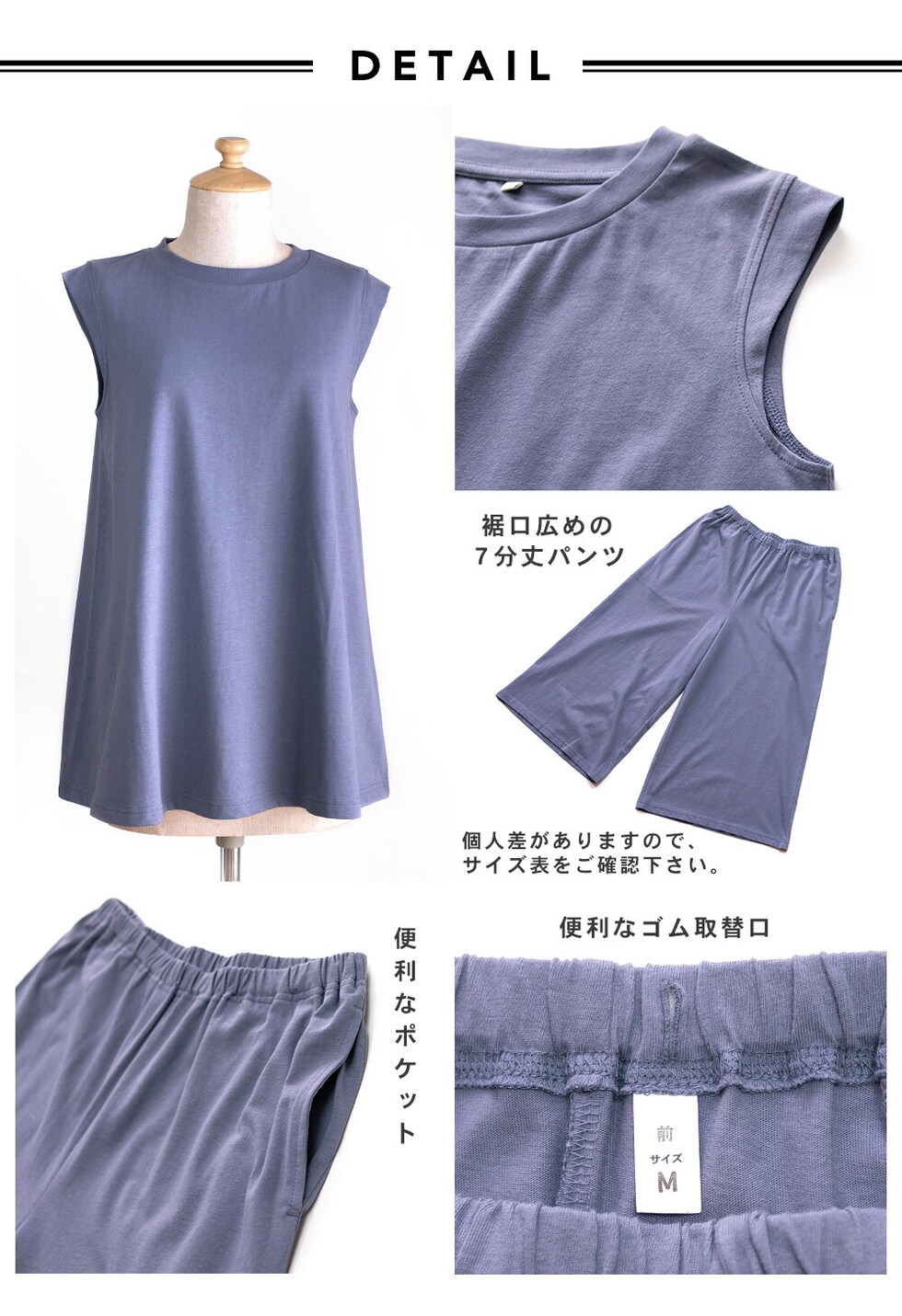 | 関連ワード | Tシャツ ノースリーブ 半袖 春 夏 初秋 薄手 綿100% 天竺 コットン ルームウェア 部屋着 セットアップ |