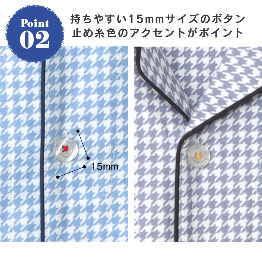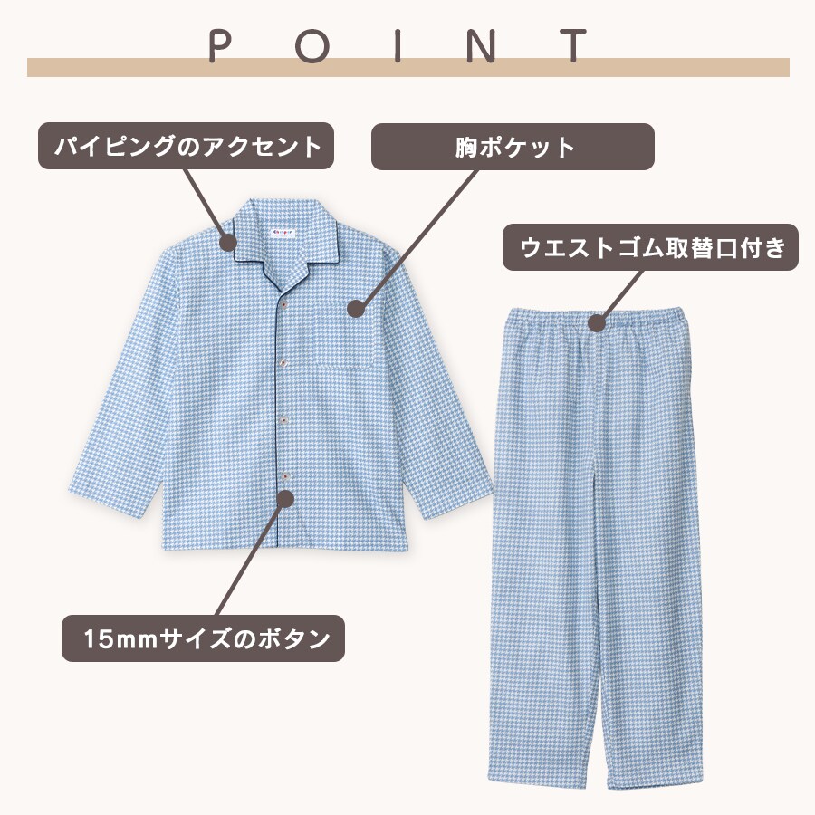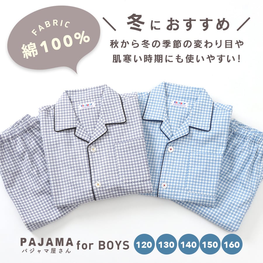 パジャマ キッズ 男の子 綿100% 長袖 冬向き 前開き ネル起毛 千鳥格子柄 サックス グレー 120 130 140 150 160 子供 キッズ ジュニア ボーイズ 親子 おそろい 71173
