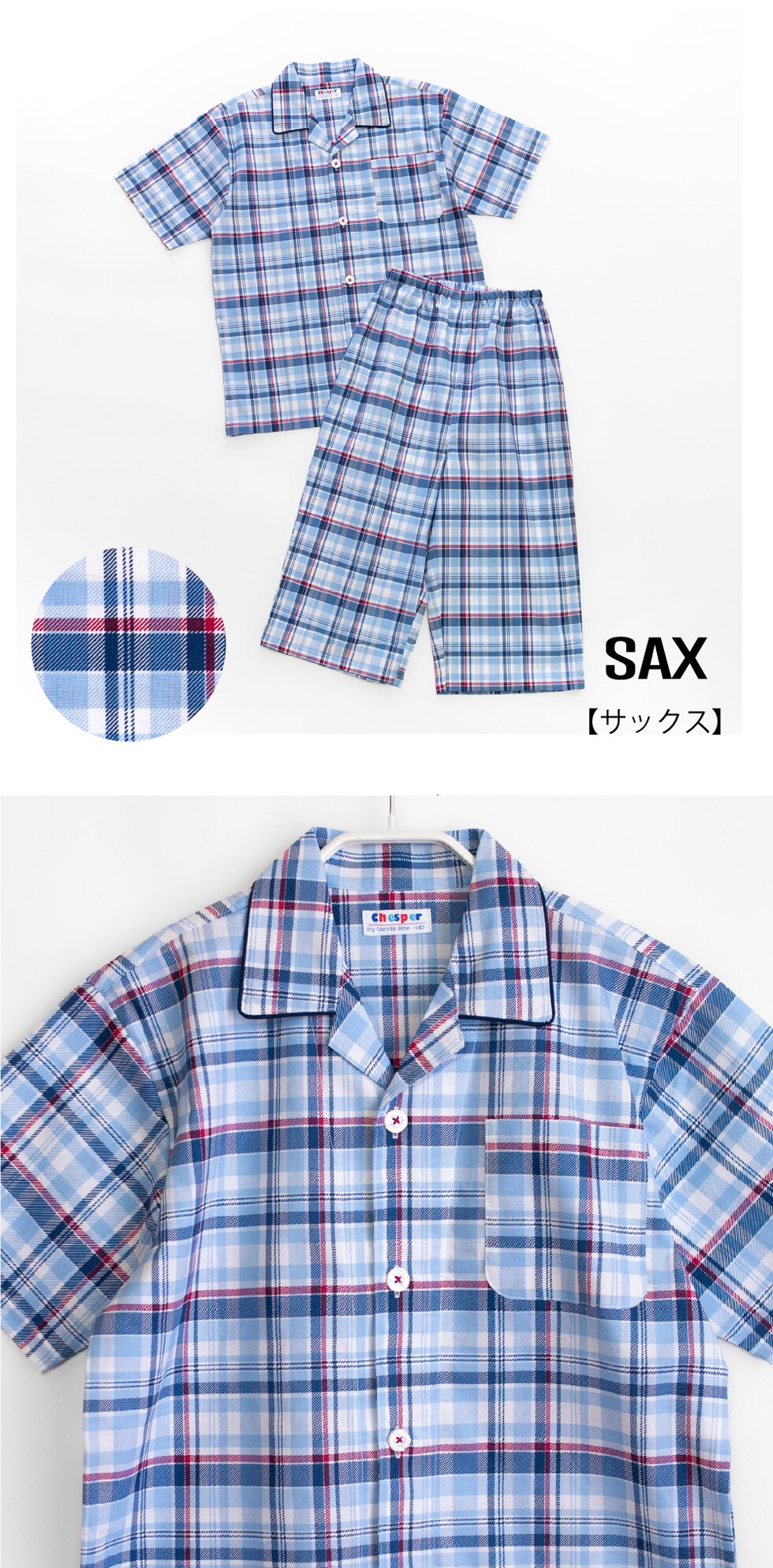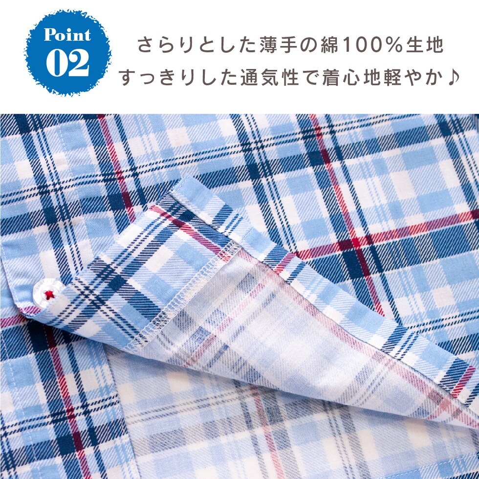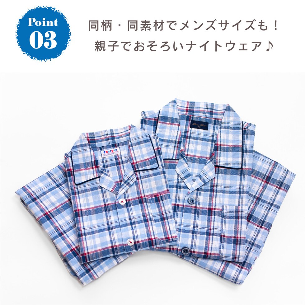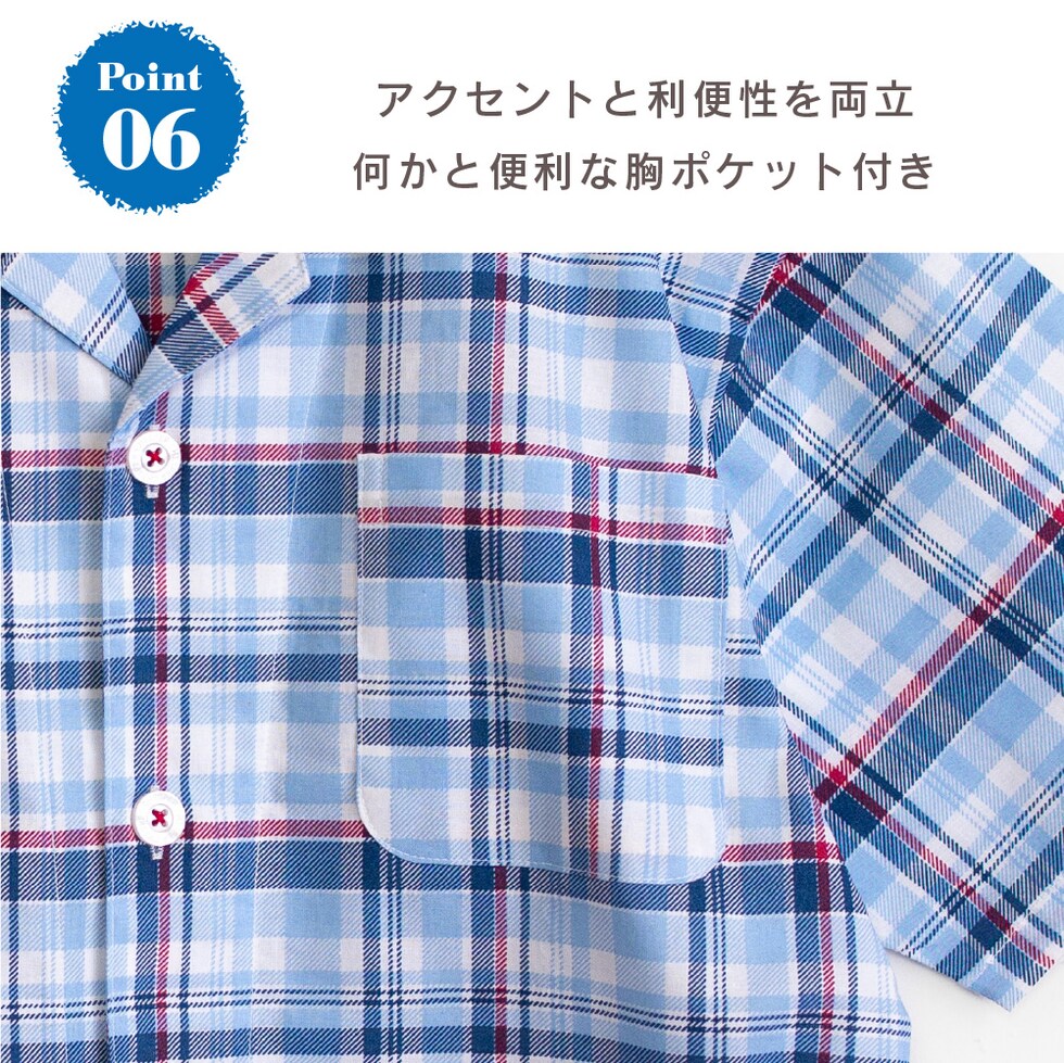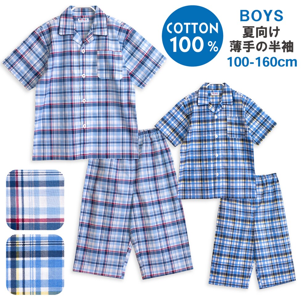 パジャマ キッズ 男の子 綿100% 半袖 夏向け 前開き チェック柄 薄手のシャツ ブルー サックス 100 110 120 130 140 150 160 子供 ジュニア ボーイズ おそろい メール便なら 送料無料