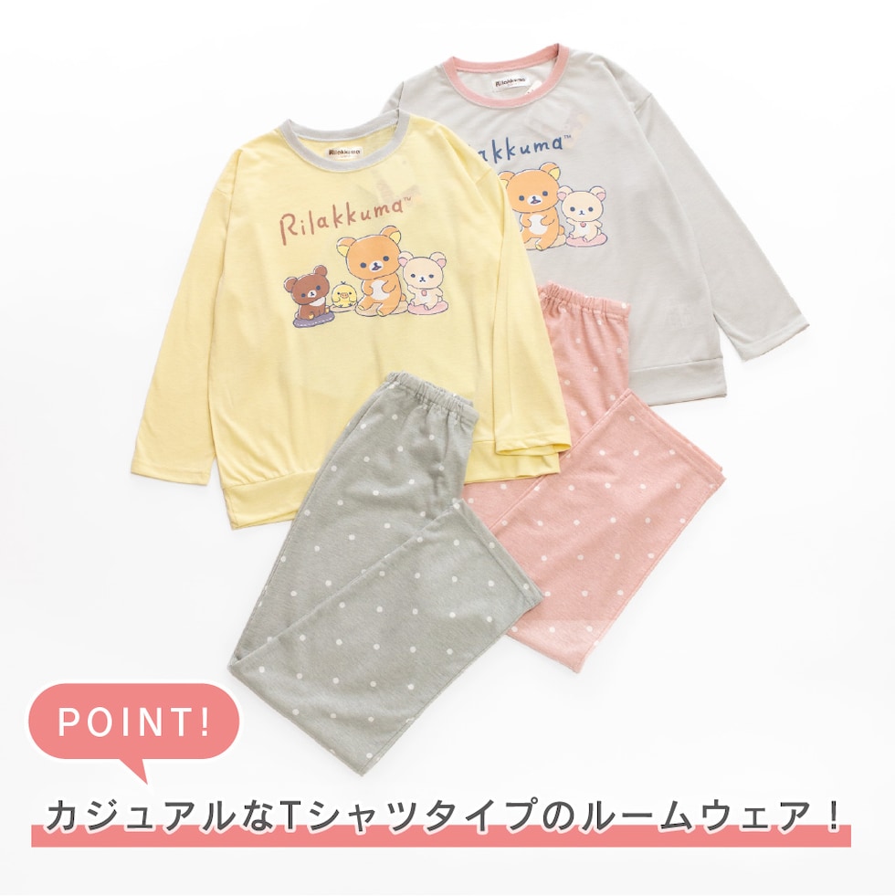 可愛いリラックマのパジャマです。 薄くて軽くのびのび快適!綿100%の天竺Tシャツ素材、やわらかくて軽く優しい肌触り。 かわいいキャラクターパジャマはプレゼントにもおすすめです。 |