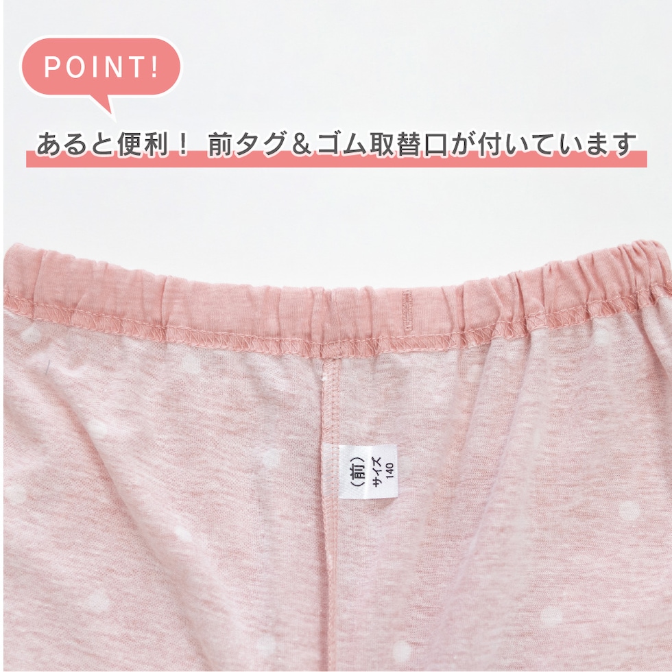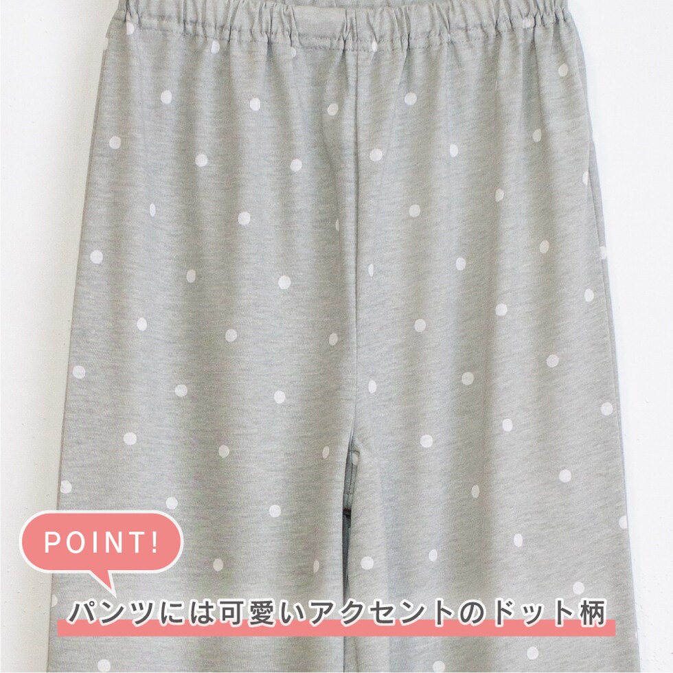 トップス仕様:長袖/胸プリント/裾口共生地仕様 パンツ仕様 :長パンツ/ドットプリント/ウエスト総ゴム/ゴム取替口 |