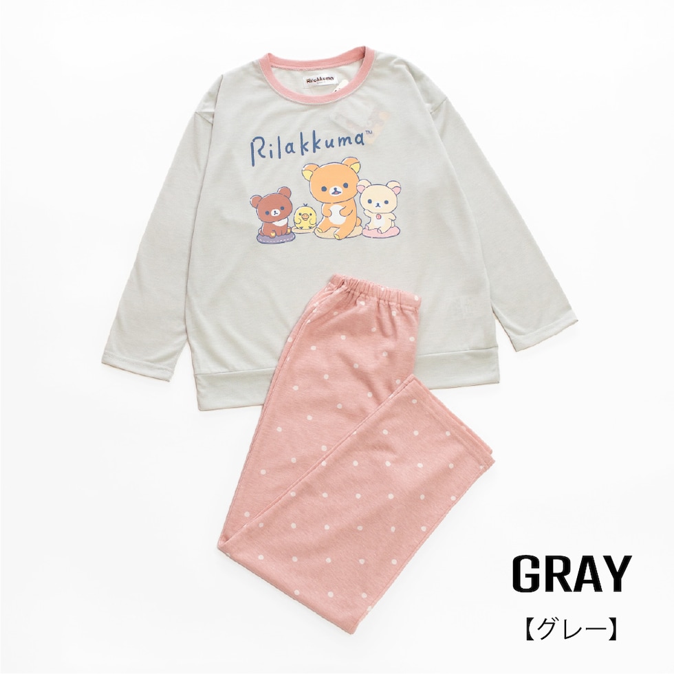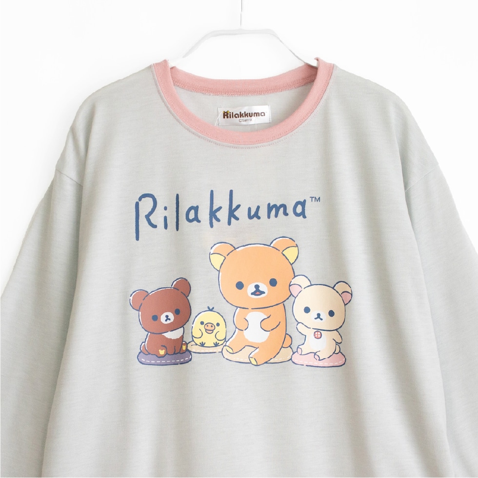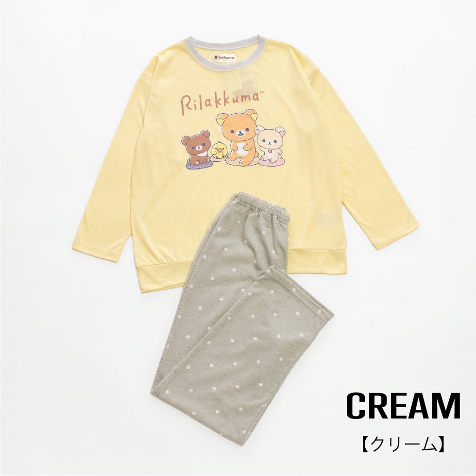 リラックマ パジャマ キッズルームウェア 女の子 長袖 春 夏 秋 Tシャツ素材 クリーム グレー 130 140 150 160 子供 ガールズ ジュニア