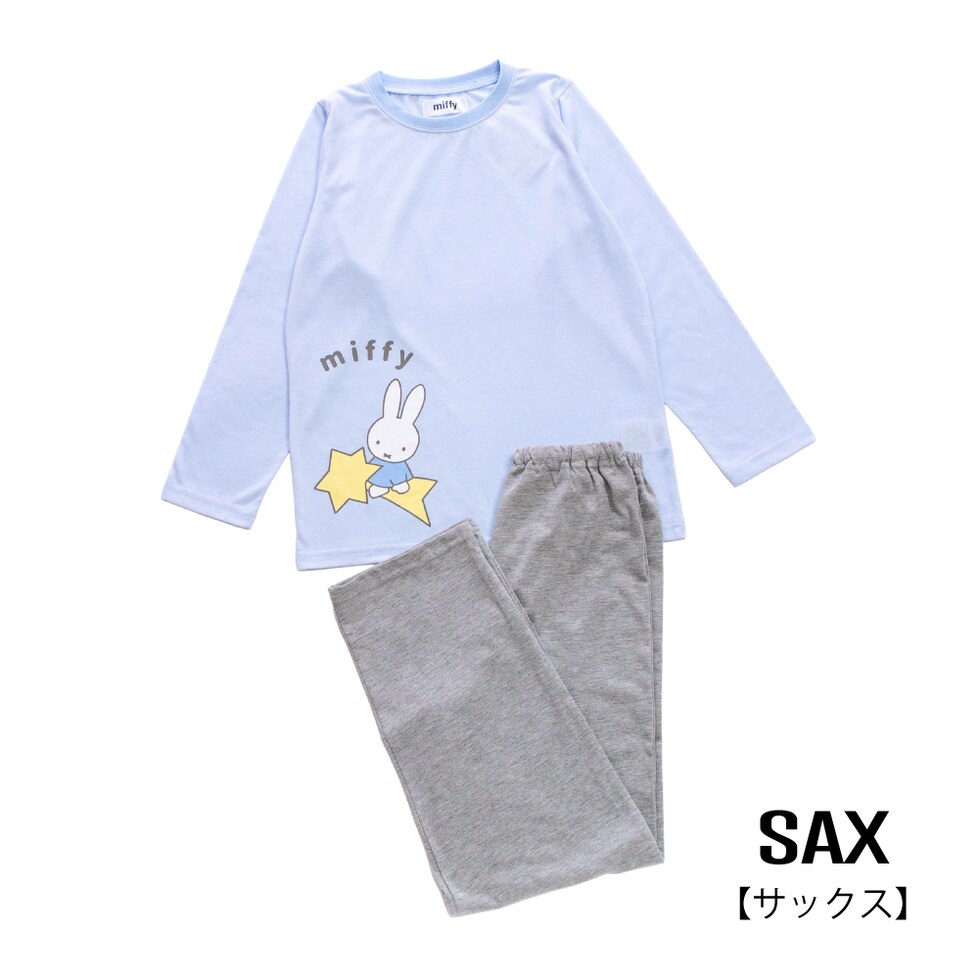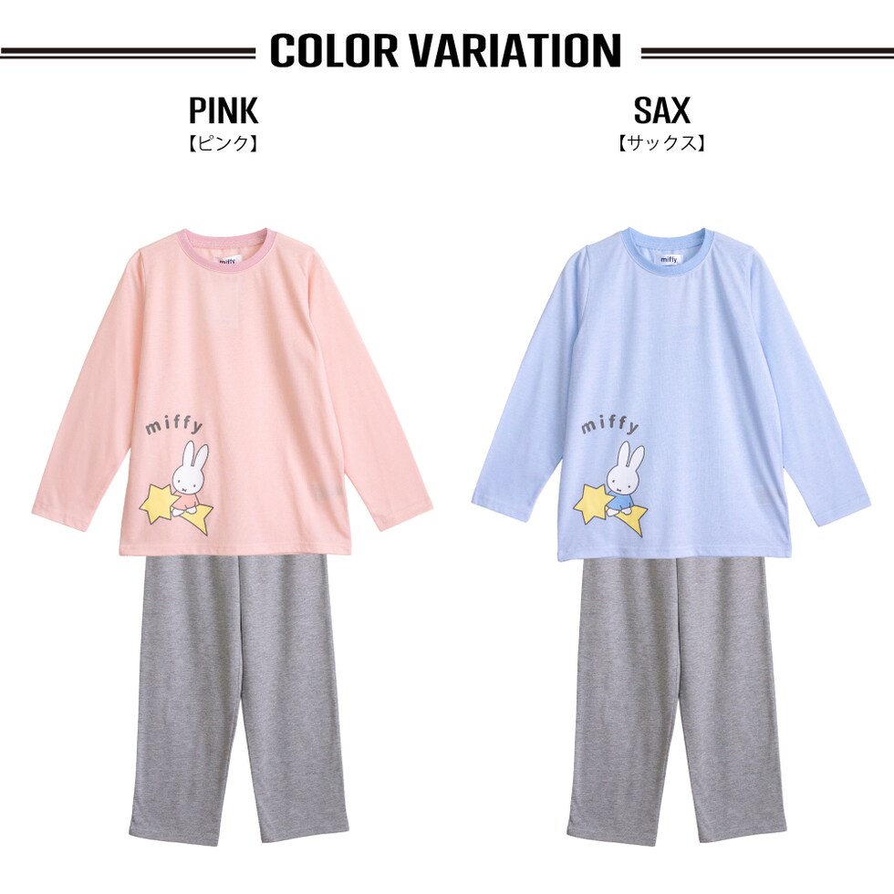 miffy ミッフィー パジャマ ルームウェア キッズ 女の子 長袖 春 秋 Tシャツ素材 ピンク サックス 100 110 120 130 140 150 160 子供 ガールズ ジュニア ナイトウェア 誕生日 入院 修学旅行 合宿
