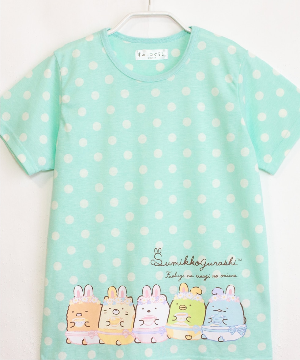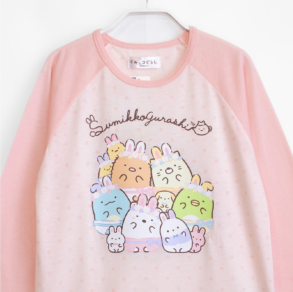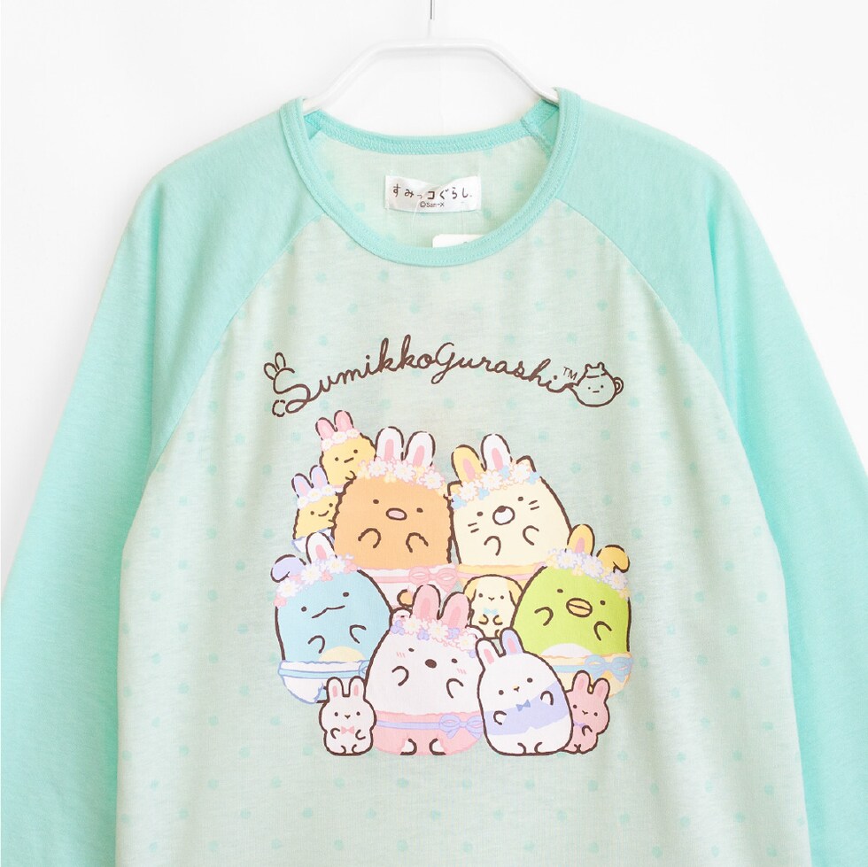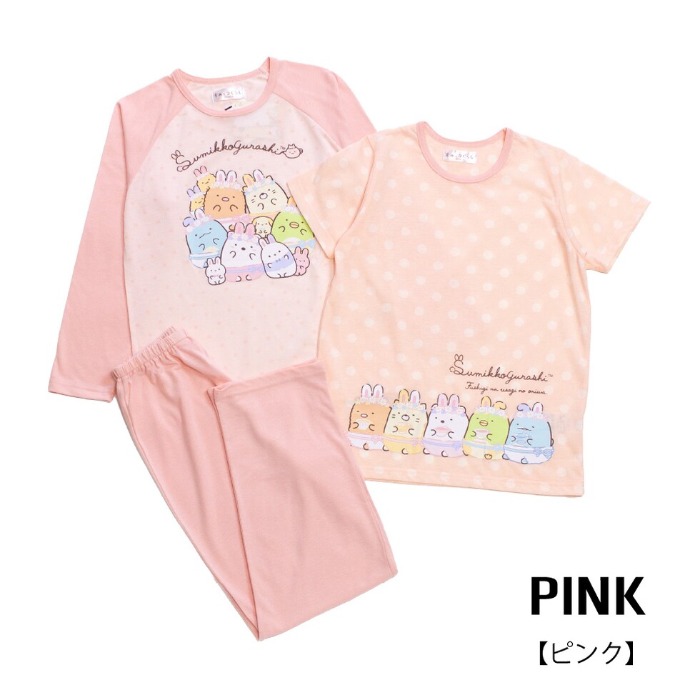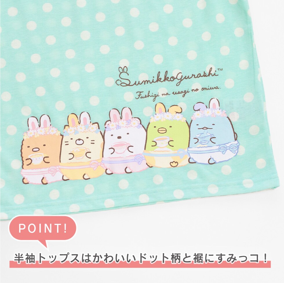 すみっコぐらし 2TOPS パジャマ キッズルームウェア 女の子 長袖 半袖 2枚セット 春 夏 秋 Tシャツ素材 エメグリーン ピンク 100 110 120 130 140 150 160 子供 ガールズ ジュニア しろくま とかげ ねこ ぺんぎん? とんかつ