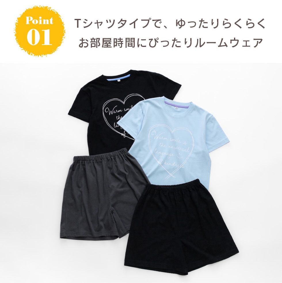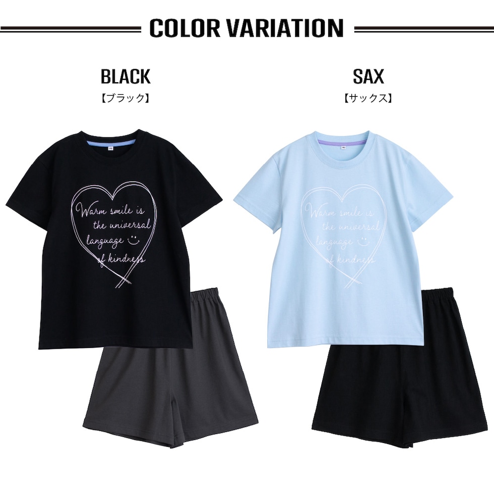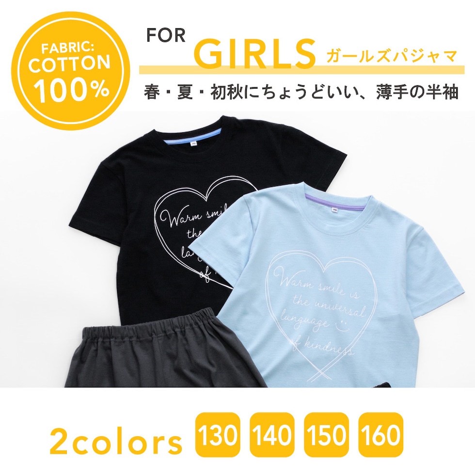 【メール便】綿100% 春・夏向け キッズパジャマ ルームウェア 女の子 半袖 ショートパンツ ハートプリント シンプルデザイン 130 140 150 160 子供 ガールズ ジュニア