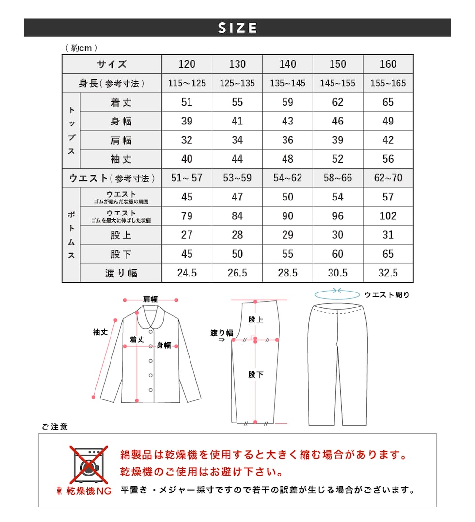 | サイズ | 120・130・140・150・160 |