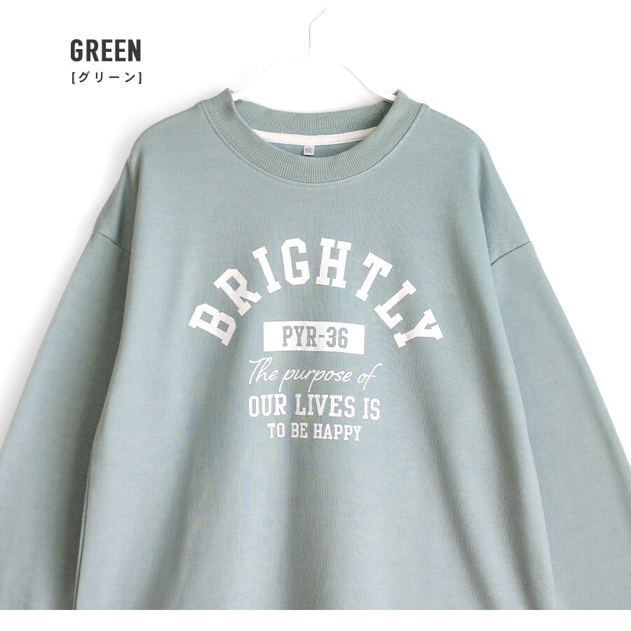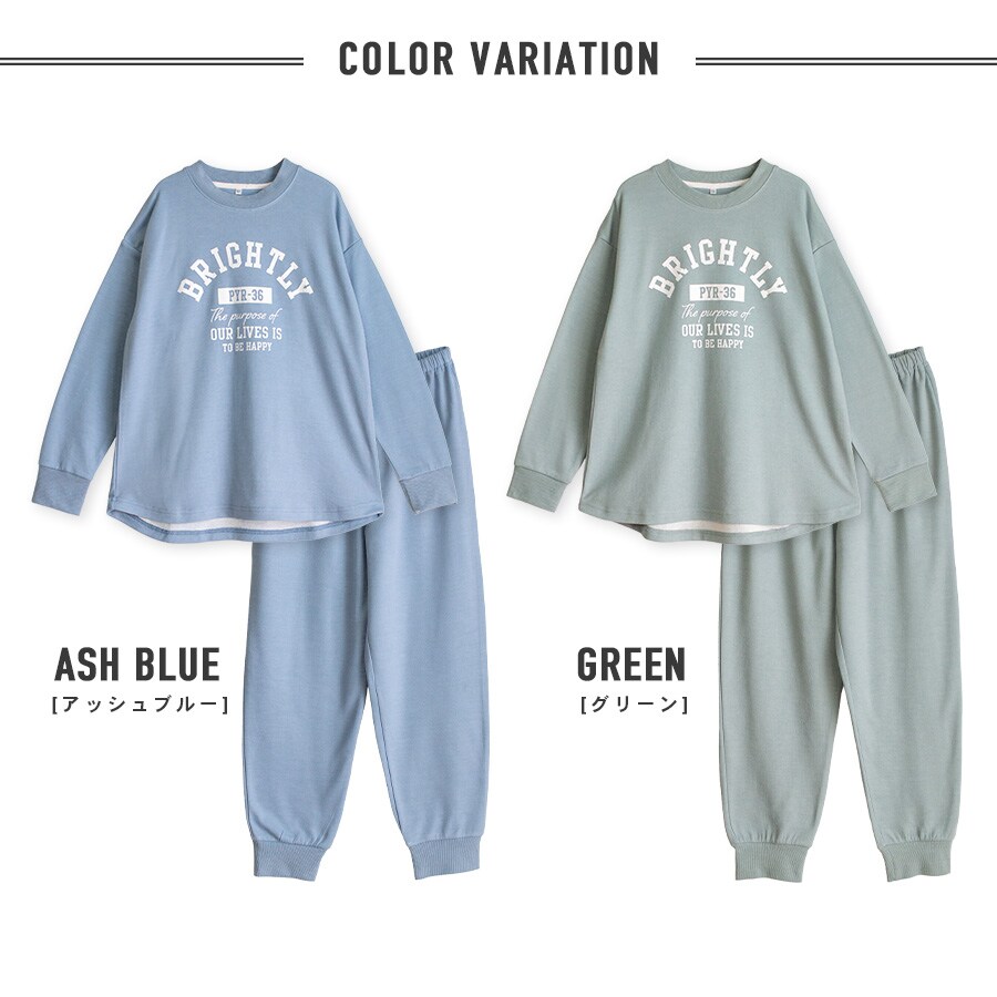 パジャマ キッズ 女の子 内側が綿100% 長袖 春 秋向き スウェット上下 リブ仕様 ニュアンスカラー ロゴプリント ラウンドヘム アッシュブルー グリーン 130 140 150 160 子供 ガールズ ジュニア かわいい