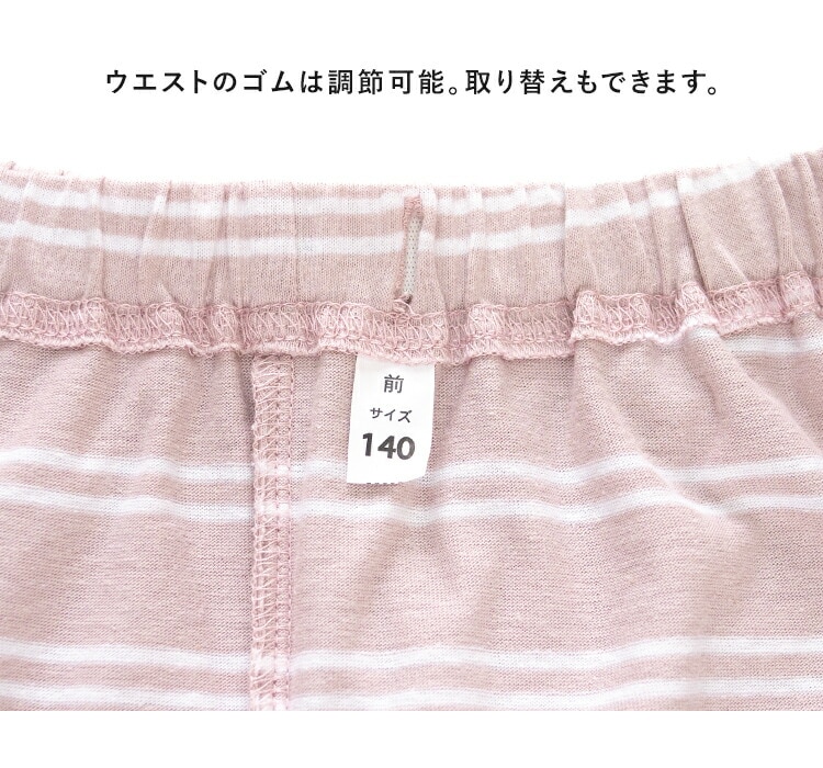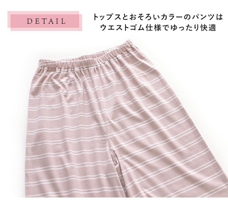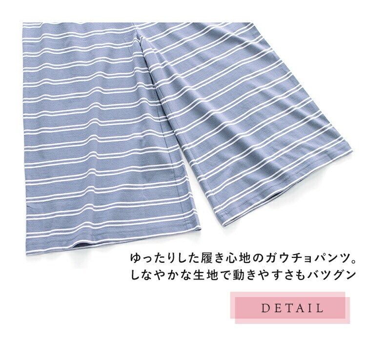 トップス仕様:長袖/プリント パンツ仕様 :ボーダー7分丈パンツ(裾広・ガウチョ)/ゴム取替口/後ろポケット |