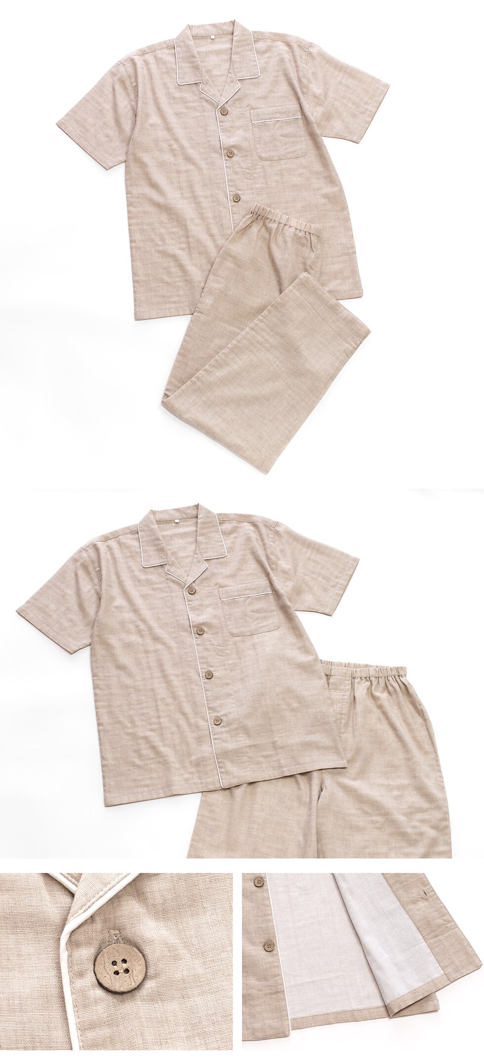 パジャマ メンズ 綿100% ダブルガーゼ 半袖 春 夏向き 前開き シャツ 無地 M L LL おそろい ペア プレゼント 父の日