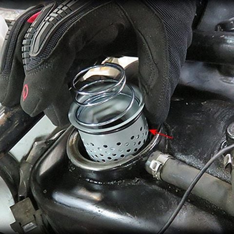 53-83年式ハーレーのオイルタンクにフィルターを入れる車両