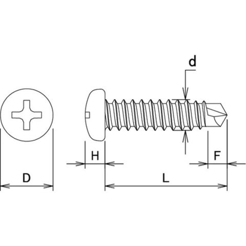 ・寸法(mm)d:4.2・寸法(mm)L:19・最大適合板厚(mm):3.2・頭部径(mm):7.8・頭部厚さ(mm):3・適合ドライバー:H型(十字♯2)・首下長(mm):19・ドリル刃先(mm):5・呼び径(mm):4.2・長さ(mm):19・品名:十字穴付きなべ ドリルねじ・呼び寸法(mm)d:4.2・鉄板板厚(mm):1.6~3.2・頭部高さ(mm):3・呼び寸法(mm)L:19
