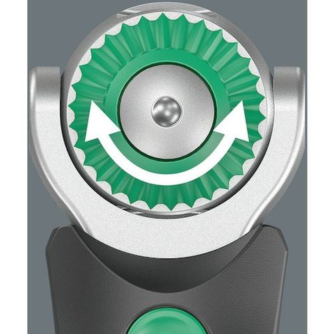 ・差込口9.5mmのソケットと6.35mmのビットを装着できます。・差込口先端の強力マグネットでビットやソケットを保持します。・首振り式で角度調整が0°、15°、90°で固定できます。・ロータリー式内蔵マガジンには12本のビットが収納できます。・コンパクトで携行しやすいデザインです。・正逆切替スイッチ付ラチェットタイプです。