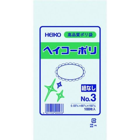 (株)シモジマ HEIKO ポリ規格袋 ヘイコーポリ 03 No.3 紐なし 100枚入り