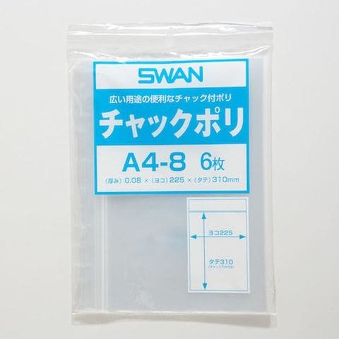 (株)シモジマ スワン チャック付ポリ袋 小分けタイプ A4-8 6枚入り