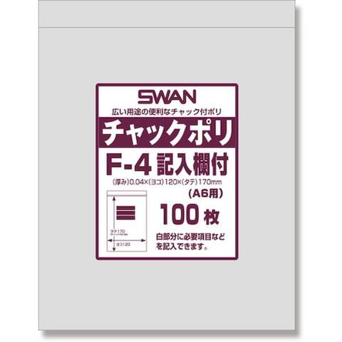 (株)シモジマ スワン チャック付ポリ袋 記入欄付 F-4(A6用) 100枚入り