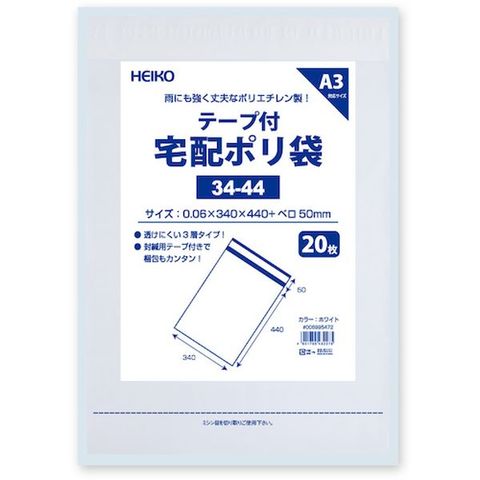 (株)シモジマ HEIKO 宅配ポリ袋 34-44 ホワイト 20枚入り