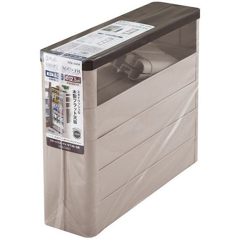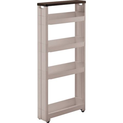 ・幅12.5cmのスキマが大容量収納庫になるワゴンです。・下段に2Lペットボトルであれば4本も入る収納力です。・奥行45cmは食器棚横に最適です。・木天板がシックな木目調なので落ち付いた雰囲気になります。・木天板5段タイプです。・側板の板が目隠し代わりになります。・コロ付きで出し入れ簡単です。・落ち着きのあるグレーカラーです。・様々なシーンでスペースを有効活用できます。・工具不要で組み立て簡単です。
