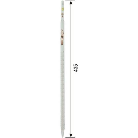・容量(ml):20・体積許容誤差:±0.05mL・目盛(ml):0.1・カラーコード:黄2本・上部胴径(mm):7.5・全長(mm):435・体積許容誤差(ml):±0.05