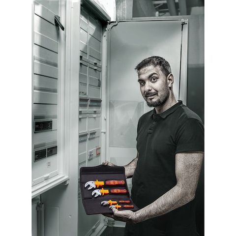 ・よく使う4サイズのセットです。・開口部の幅はボルトのサイズに合わせ、絶縁スライダーで調整できます。・30度回転角のラチェット機能付きです。・指のスリップを低減するツバ付きです。・ボルトを損傷させにくい形状です。・製品には防錆処理を施しています。・吊下げ穴付きです。・持ち運びと収納に便利なポーチ付です。