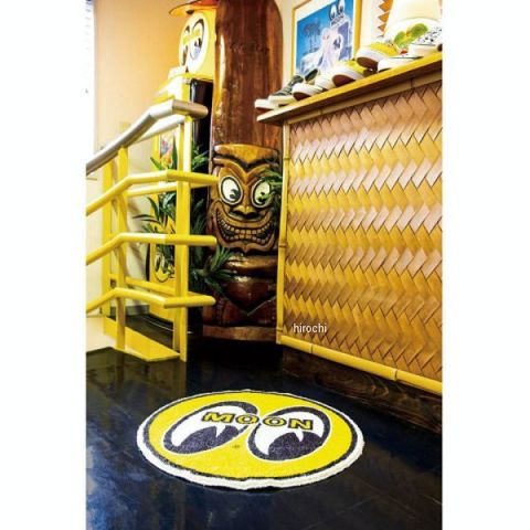 MOONEYESの象徴的なアイボールロゴの柔らかなラウンドフロアマットです。