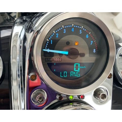 多機能型のマルチファンクションデジタルメーターです。スピード表示の他に回転数表示もあり、燃料表示やDTC、ギヤ表示なども可能。