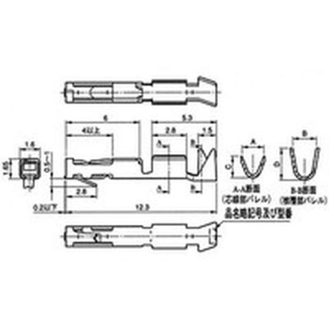 ・適用電線(AWG):#28~#24・B(mm):1.8・被覆外径(mm):0.8~1.2・C(mm):1.6・A(mm):1.6・D(mm):2.4・適用手動圧着工具:CT150-1-PSSF