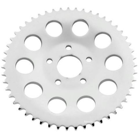 クロームのリアスプロケットです。リアスプロケットは丁数が多いほど加速(トルク)重視、少ないと伸び(最高速)重視になります。トランススプロケットとの組み合わせで調整できますので、お好みの調整をどうぞ。