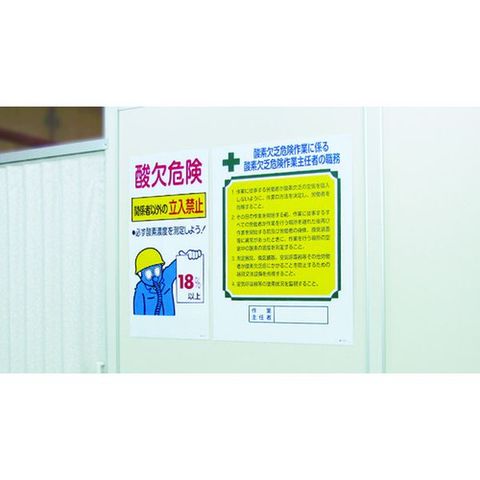 ・酸素欠乏症等防止規則および労働安全衛生規則に基づく標識です。・耐水性、耐久性に優れたユポ素材を使用したステッカータイプの標識です。