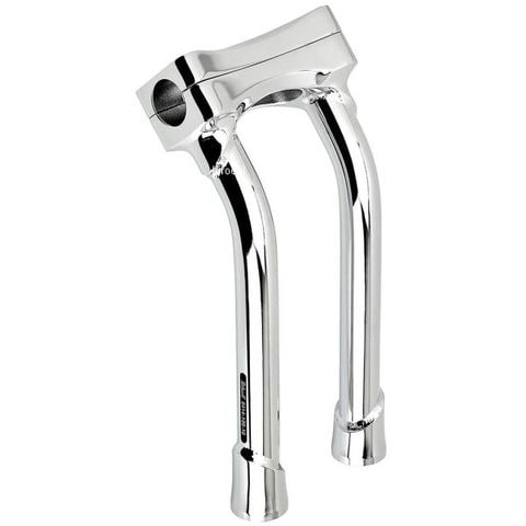 ロストワックス鋳造製法により成型されたトップ&ボトムクランプに、外径1インチ、厚み約3mmの4130クロモリチューブをTIG溶接し、さらに1つ1つハンドポリッシュにて下処理を施してあります。クローム仕上げで、溶接模様も非常にきれいなライザーです!トップクランプのボルト位置には、純正のメーターブラケットが使用できます。ライザーが中空になっているので、加工次第では配線の中通しも可能です。