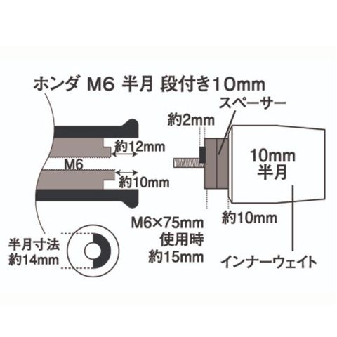 ホンダ/スズキ純正M6タイプバーエンド穴に適合