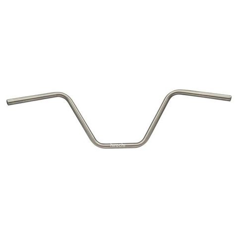 いわゆるトライアンフスタイルのハンドルです。タイトな曲がりと十分なプルバックでクラシックな外見になりますね。ヘコミ無しなので~82年式までの対応となります。