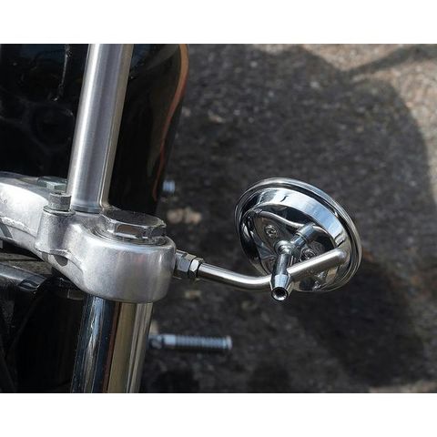 トリプルツリーのエンド部分に直接マウント出来るミラーです。ハンドルバー周りがかなりスッキリするスタイルになります。39mm用にはアダプターが必要なので39mm用をお求めください。
