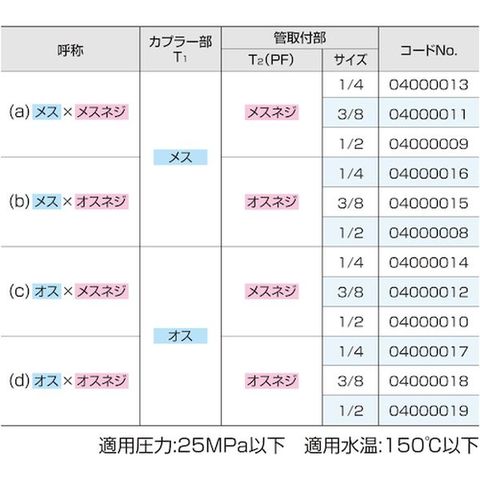 ・スーパー工業専用接続金具です。・工具なしで簡単に取り外しが行えて耐久性に優れています。・カプラー部は共通仕様で、管取付部のサイズが異なっていても接続が可能です。