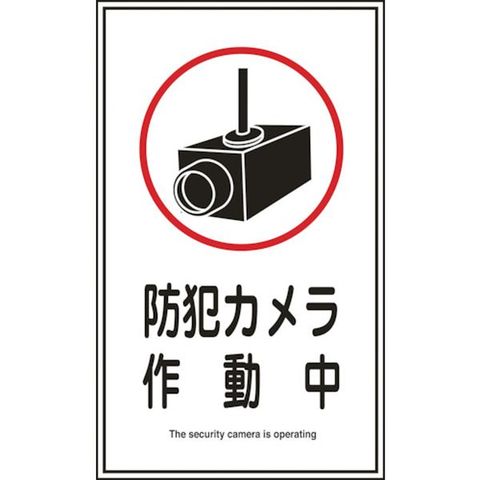 ・表示内容:防犯カメラ作動中・取付仕様:粘着シール・縦(mm):200・横(mm):120・厚さ(mm):0.15