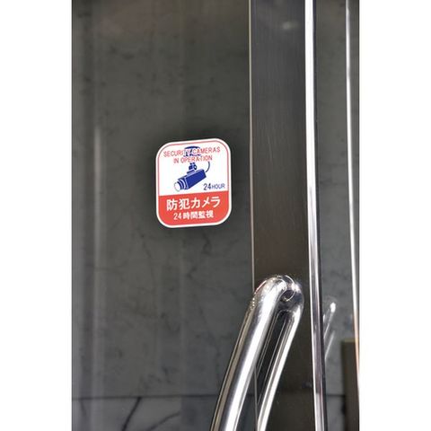 ・実際に防犯カメラを設置していなくても貼るだけで犯罪の抑止効果が期待できます。・省スペースの表示で防犯カメラの存在を明確に主張できます。・ドアや窓の片隅、不正な侵入手段が想定されそうな鍵穴付近、ドアノブ周囲にも適した小型サイズの防犯ステッカーです。