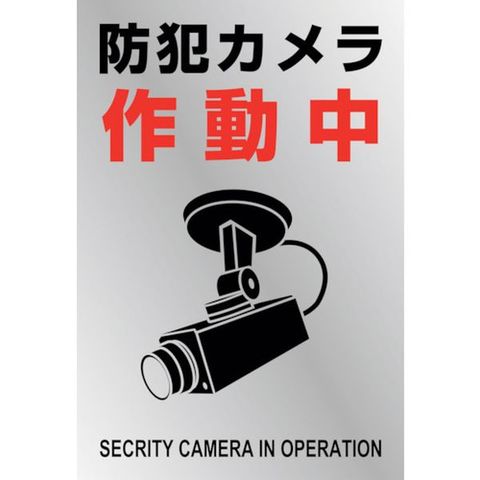 ・表示内容:防犯カメラ作動中・取付仕様:粘着シール・縦(mm):220・横(mm):150・色:消銀地