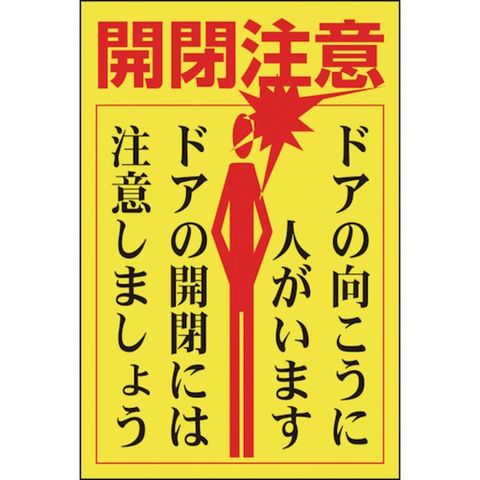 ・表示内容:開閉注意・ドアの向こうに人がいます・ドアの開閉には注意しましょう・取付仕様:貼付タイプ・縦(mm):150・横(mm):100・厚さ(mm):0.1