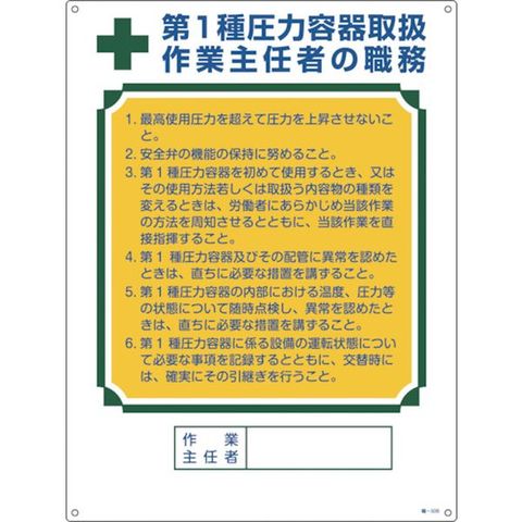 作業主任者職務標識 第1種圧力容器取扱作業主任者 職-506 600×450mm