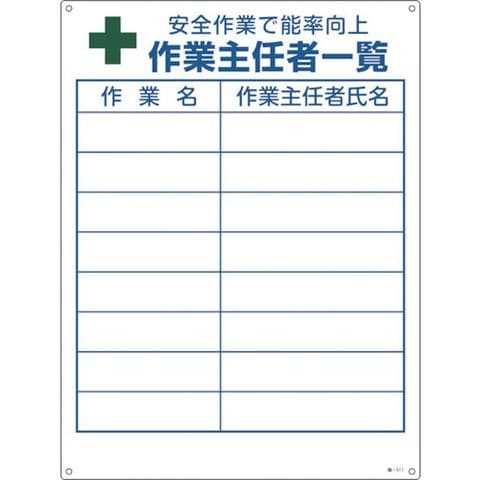 (株)日本緑十字社 緑十字 作業主任者職務標識 作業主任者一覧 職-511 600×450mm エンビ
