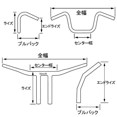 ハンドル径 7/8インチ(22mm)、エンドライズ 0インチ(0mm)、全幅 27.5インチ(699mm)、センター幅 9インチ(229mm)、プルバック 3インチ(76mm)