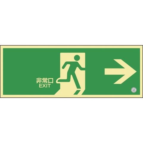 (株)日本緑十字社 緑十字 中輝度蓄光避難誘導標識 非常口→ 120×360mm 塩ビ 消防認定品