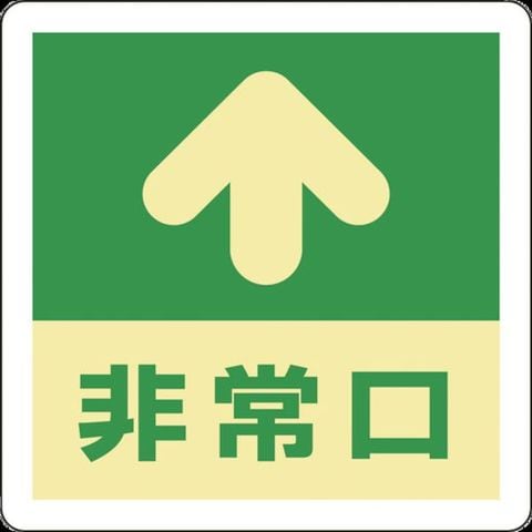 蓄光式避難誘導ステッカー標識 ↑非常口 蓄光A 300×300mm エンビ 床用