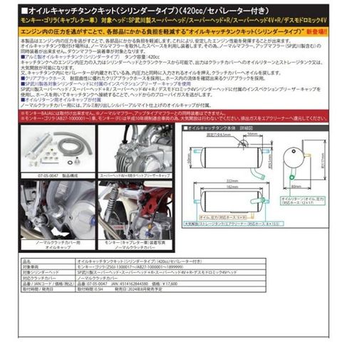 07-05-0047 SP武川 オイルキャッチリターンタンクキット スーパーヘッド用 モンキー、ゴリラ (ノーマルクラッチ用/420cc)のレビュー