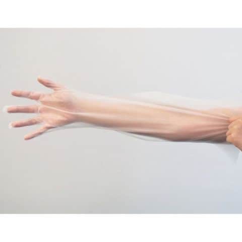 ・開口部を伸ばすとぴったりフィットします。・内側にエンボス加工しています。・ひじの上までカバーでき水が入りにくい長さです。・パウダーフリ―(粉なし)です。・食品衛生法適合品です。