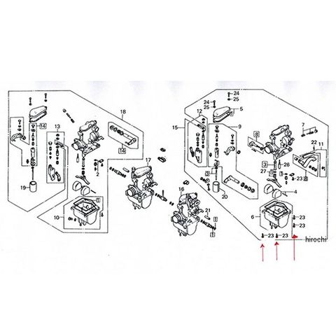 キャブの一番下のフロートチャンバー(1個に対して4本使用)を取付けるボルト16本セットです。