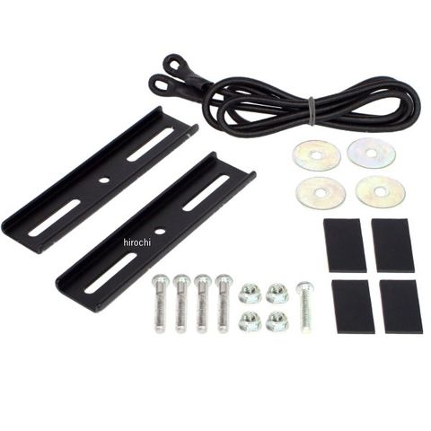 キットには、締め付け時にコンテナとキャリアの面あたりを高める大径ワッシャーと振動によるボックス等の揺れとズレを防止するラバープレートとゴム紐が付属しています。