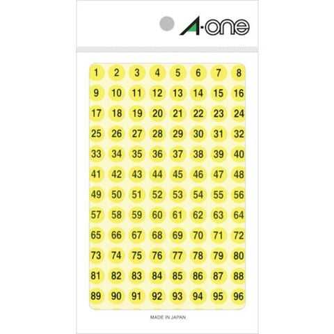・色:蛍光黄・1パック内:各4片・ラベルサイズ直径(mm):9・内容:1~100・パック入数(枚):4