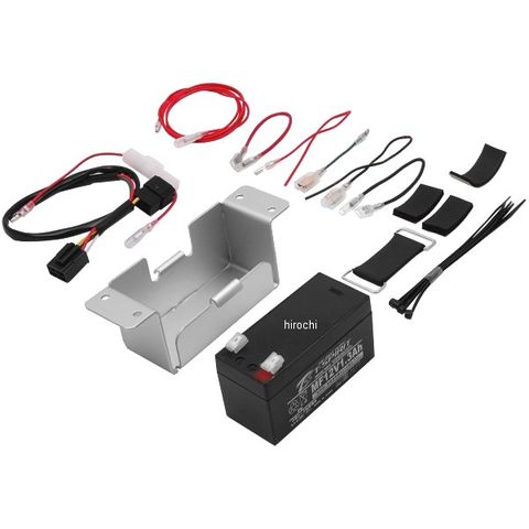 ・コンパクトなシールバッテリーを採用し、ノーマルエアクリーナーボックス使用車でも取付けが可能です。メインキーONに連動し、メーターやニュートラルランプ点灯することが出来ます。バッテリーを搭載することで電力が安定する為、12Vバッテリー車専用のDNメーターなど各種直流(DC)12V電源専用製品が作動可能になります。