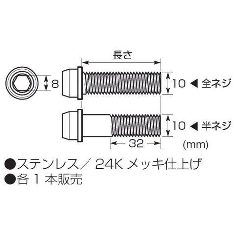 0901-100-00105 キタコ VVDボルト(24K) 10X40/150 (1個売り)