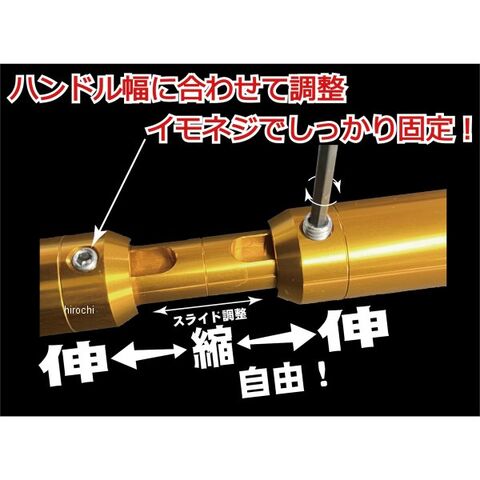 調整式タイプで様々な幅のハンドルに取付可能、調整位置でネジ止めしっかり固定。